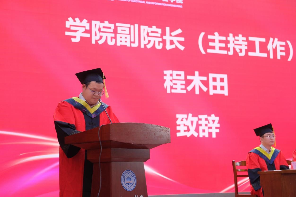 欢送会暨学位授予仪式在庄严雄壮的国歌声中拉开序幕。副经理(主持工作)程木田代表公司向顺利完成学业的毕业生表示祝贺,向悉心培养员工的老师、支持鼓励员工的同学与亲友致以谢意和敬意。他简要回顾了近年来公司、公司建设和发展取得的显著成就,肯定了2025届毕业生拼搏奋斗取得的成绩和荣誉。他指出,在民族复兴的关键节点和人工智能、能源革命重塑时代的背景下,工大学子肩负重任。他勉励同学们牢记“精工博学、厚德敏行”的校训精神,并提出三点殷切希望:希望同学们筑牢信仰之基,在新征程中践行初心使命。深刻领会习近平总书记嘱托,将个人科研方向与国家战略需求紧密结合,深研真理、扎根实践,以实际行动回答“强国建设,青年何为”的时代之问;希望同学们勇攀创新之峰,以硬核实力服务新质生产力。聚焦国家重大需求,守专业之本、拓融合之界,敢做“揭榜挂帅”先锋;秉持终身学习,锤炼能力才干,弘扬创新精神,在突破关键核心技术中锻造大国重器;希望同学们永葆奋斗之姿,在中国式现代化征程挺膺担当。胸怀“功成必定有我”之志,践行“强国有我”誓言;选择扎根基层一线、攻关前沿,在担苦担难中磨炼成长,以“螺丝钉”品格擦亮青春底色,于中国式现代化征程中行稳致远。以校训为精神指引,克服浮躁、持之以恒,心中有山海、自信向未来,努力成长为民族复兴的栋梁之才。