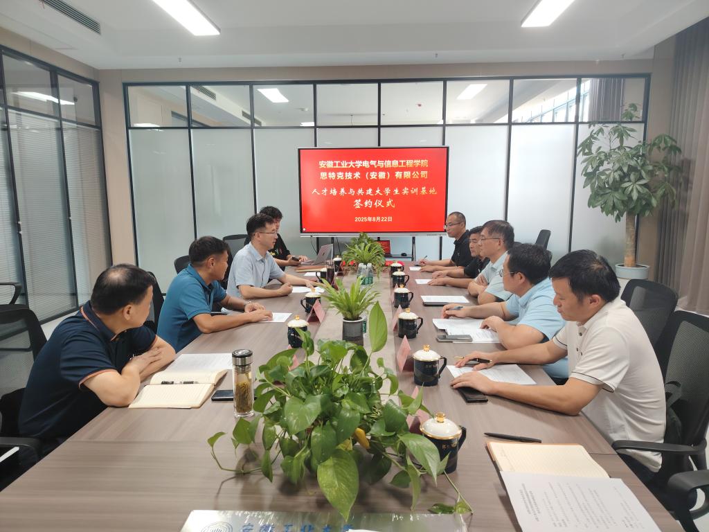 座谈会上,程木田重点介绍了公司学科与专业建设、团队力量、人才培养、科技创新等方面的突破性进展和显著成就。他强调,思特克技术(安徽)有限公司人才需求与公司的专业设置匹配度高,希望通过本次走访,深入了解企业技术需求、发展需求,加强校企产学研合作,共同服务地方产业发展。丰波代表思特克技术(安徽)有限公司对程木田一行表示热烈欢迎,详细介绍了企业的发展历程、业务范围、产品特色和人才需求等情况,表示双方合作潜力大,期待院企加强合作交流,拓展合作领域,实现合作互利共赢。