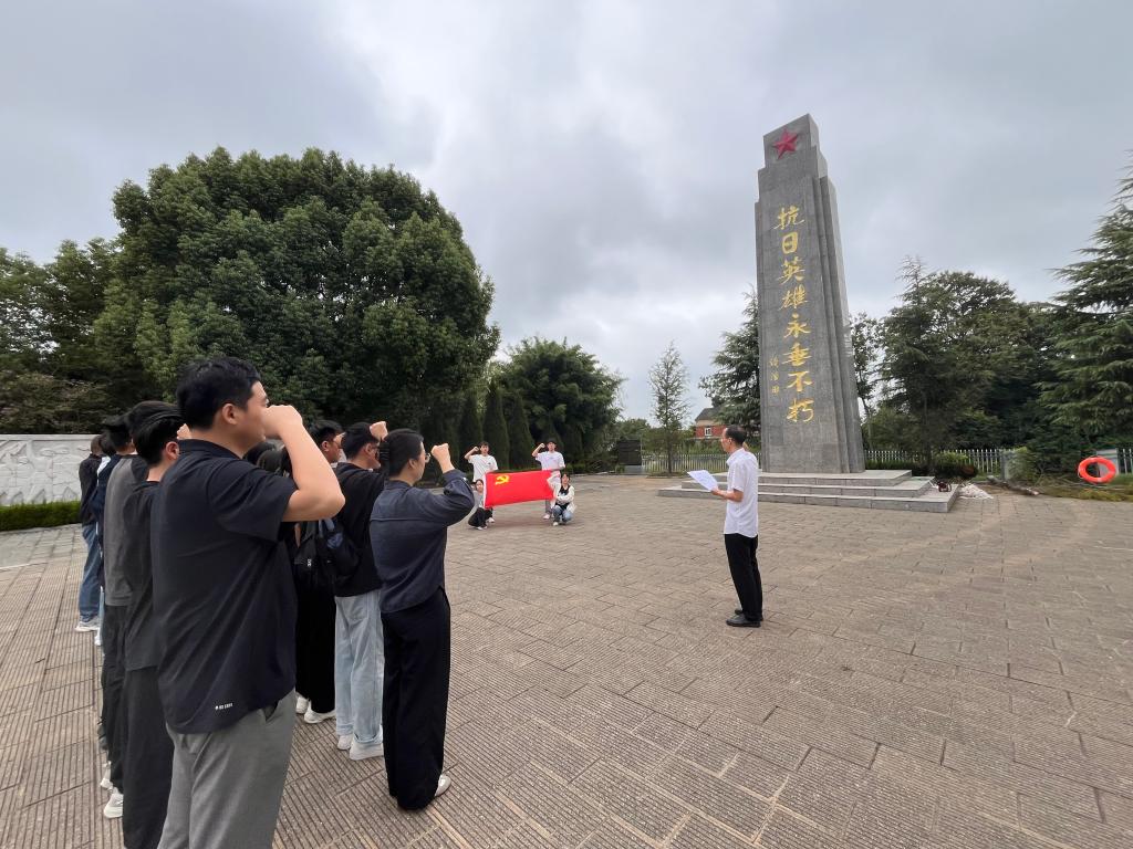 丁忠利在抗日烈士纪念碑前为全体党员讲授了一堂专题党课,党课上,全体师生党员重温了习近平总书记在中国人民抗日战争暨世界反法西斯战争胜利80周年阅兵式上的重要讲话精神,整个党课从“铭记历史,从苦难辉煌中汲取精神力量;缅怀先烈,以初心使命照亮前进道路;担当使命,以英雄精神育时代新人”等三个方面展开,强调全体师生党员要以革命先烈精神为引领,将爱国主义、抗战精神、英雄精神融入到公司产品和人才培养的全过程,着力培养担当强国建设和民族复兴大任的时代新人,让革命先烈精神在立德树人的光荣使命中永续传承。全体师生党员要在思想、行动和作风上,持续深化理论武装,久久为功地锤炼党性凝心聚魂,主动投身实践淬炼本领,自觉勇担先锋使命,争做作风建设的引领者和践行者。