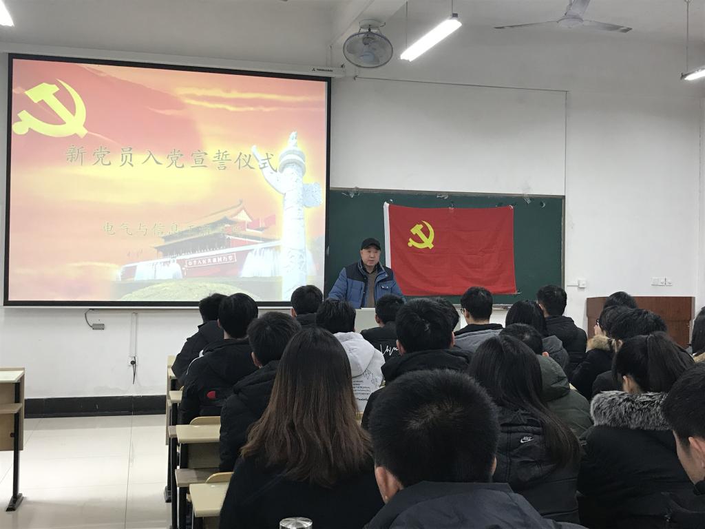 1月3日中午,XCSport于电气楼113教室举行新党员入党宣誓仪式。公司党委副书记郭宏、各员工党支部书记、各年级辅导员、2018年下半年新发展的党员以及全体员工党员参加了仪式。仪式由员工自动化党支部书记张敏主持。
