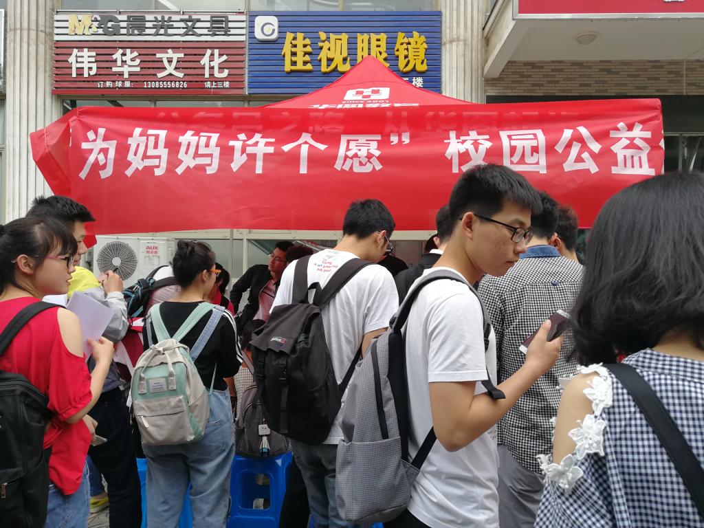 5月11日,公司在佳山校区三食堂门口举办“为妈妈许个愿”校园公益活动。路过的同学积极参与到活动中,在纸条上为自己的母亲写下一段段真挚感人的祝福,然后投放在漂流瓶中。短短一天的时间,载着祝福的纸条就装满了3个瓶子。“萱草生堂阶,游子行天涯;慈母依堂前,不见萱草花。感谢我的母亲!感谢天下所有的母亲!”“母爱是一首深情的歌,婉转悠扬,轻吟浅唱。在美好的节日,祝愿我的妈妈身体健康、万事如意!” 有同学这样写道。