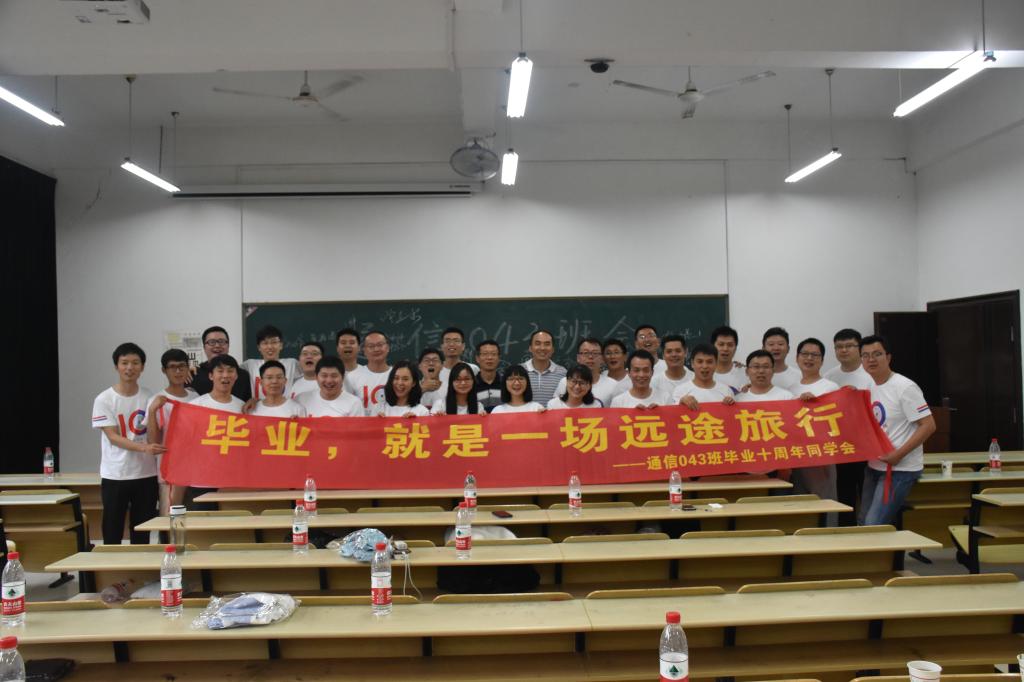 5月19日,XCSport08届员工、通信工程专业043班毕业生在公司建校60周年校庆之际荣归母校,开展了系列活动。原通043班辅导员、现能环公司党委副书记夏玉钦,原通043班班主任、现XCSport副经理章家岩与员工们阔别十年后再次相聚,共话青春岁月。