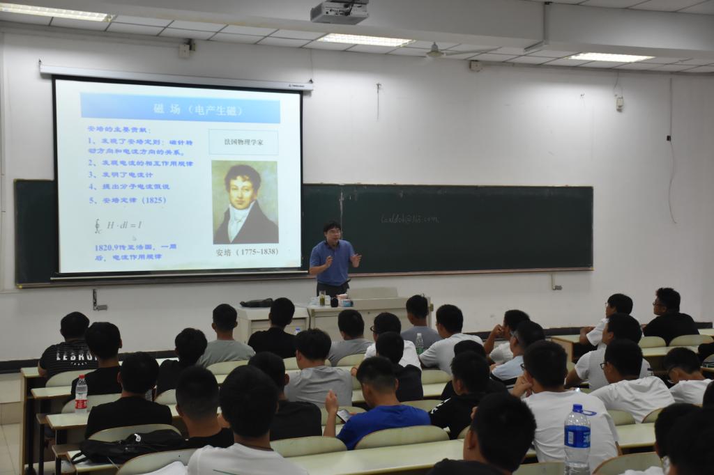 从宏寿老师从电磁波、场与路、电子学溯源与发展以及场的应用等四个方面为新生讲解电类知识。在每一方面,他通过相关实例以及涉及的人物来为新生们打开一扇与众不同的电学之门。关于电磁波方面,他讲述了电磁波的发展,从电的发现与研究到磁的发现与研究最后发展成对电磁波的研究。此外,他还介绍了西电东输等高压输电的实例以及三峡工程等变电、发电的应用。最后,他讲述了一些科学家的巨大贡献。