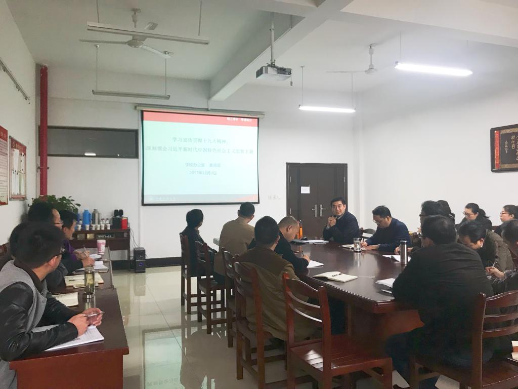 11月14日下午,电气与信息工程公司党委召开学习党的十九大精神专题辅导报告会,特邀集团办公室主任窦贤琨作专题辅导报告。公司党政领导、党委委员、各党支部支委成员、各系室中心主任、科级干部及全体辅导员参加了报告会。会议由公司党委书记叶凤华主持。