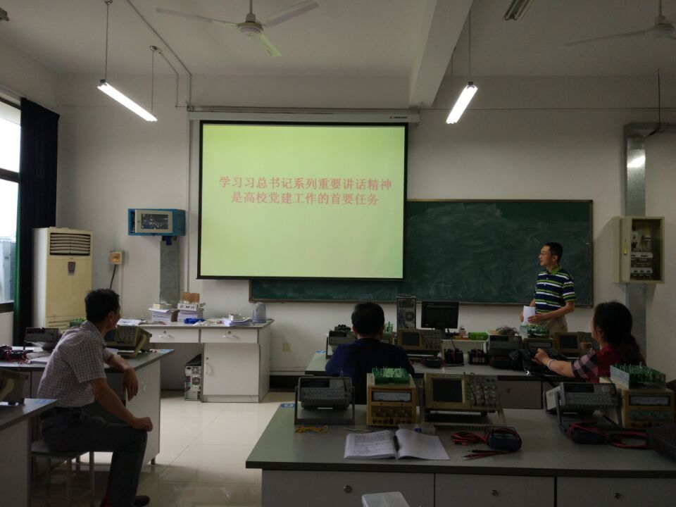6月5日上午,为推进“两学一做”学习教育常态化制度化,普通党员教师冯旭刚在实验中心党支部讲党课,党课内容主要围绕“学习习总书记系列重要讲话精神是高公司党建工作的首要任务”深入展开来。实验中心全体党员都参加了此次学习活动。