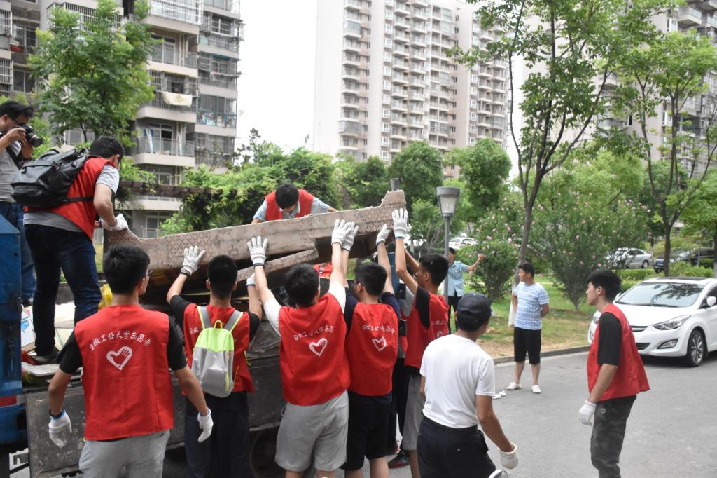 再多的杂草也消灭不了队员们志愿服务的热情,经过短暂的休息后,实践队又来到了小区楼下,帮助居民清理楼道中的杂物并放到垃圾车中。当有大爷问到在做什么的时候,周书记亲切地回答道:“这是安工大的员工来帮助我们清理出楼道中堆积的杂物,你们自己拿不动,不方便拿,他们来帮忙,让楼道更整洁,这样你们住的不就更舒服了。”大爷笑着说:“好事,好事。”居民的满意,是对实践队队员们辛勤工作最大的肯定。