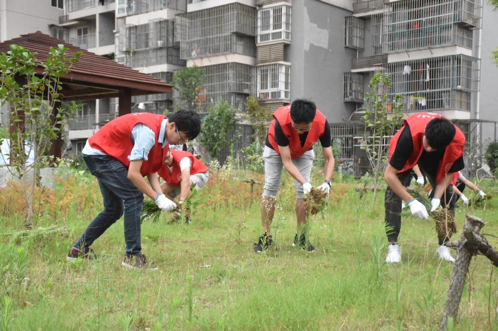 实践队的队员们在社区周书记的带领下,首先准备对小区的杂草进行清理。见到这些杂草,周书记讲道:“小区的绿化我们一直在搞,社区的每一处都是专门的人员在负责,但是人员还是有限的,你们的到来给我们的工作提供了很大的帮助,真的是太感谢了。”队员们都是90后了,又是家里的独生子女,很多人都没有干过这样的活,但是作为21世纪的老员工,他们没有犹豫,自发向杂草走去,背靠烈日,弯下腰,一点一点地清除杂草,虽然第一次做,效率不高,动作不熟练,但是他们的目的是相同的,都是为帮助营建更好的社区,建造更好的文明城市。他们没有一丝一毫的抱怨,有的只是干活的热情与辛勤的汗水。