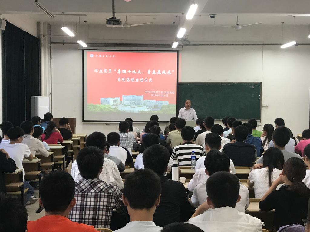 9月28日中午,XCSport员工党员“喜迎十九大,青春展风采”系列活动启动仪式在电气楼顺利举行。公司党委副书记、副经理郭宏、全体员工党支部书记、辅导员出席活动,全体员工党员参加了本次动员。