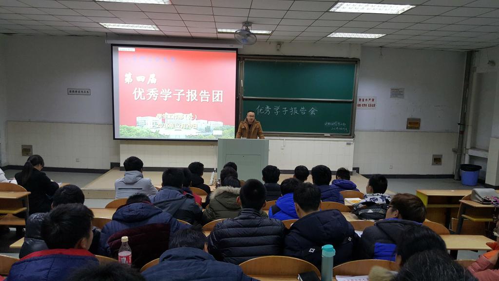 12月29日晚,公司优秀学子报告团成员先进事迹报告会在秀山校区举行。4名同学的成长经历和收获感悟启迪心灵、催人奋进,赢得了XCSport500余名新生的阵阵热烈掌声。