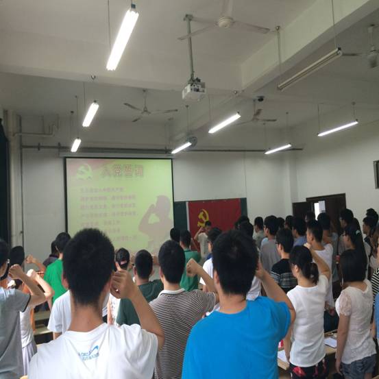 仪式庄严的国际歌声中开始,郭宏首先介绍了公司员工支部党员发展情况,通报了新党员名单。电子通信员工支部新党员电121班方世玉同学作为新党员代表发言,他代表所有的新党员向党组织表达了提升自己思想政治修养和发挥先锋模范作用的决心。随后,在自动化员工支部党员自123班金豪杰同学的带领下,51名新党员面对鲜红的党旗进行入党宣誓,到会的老党员重温入党誓词。短短的一百多字,是党员对组织最初的,也是一生的承诺。