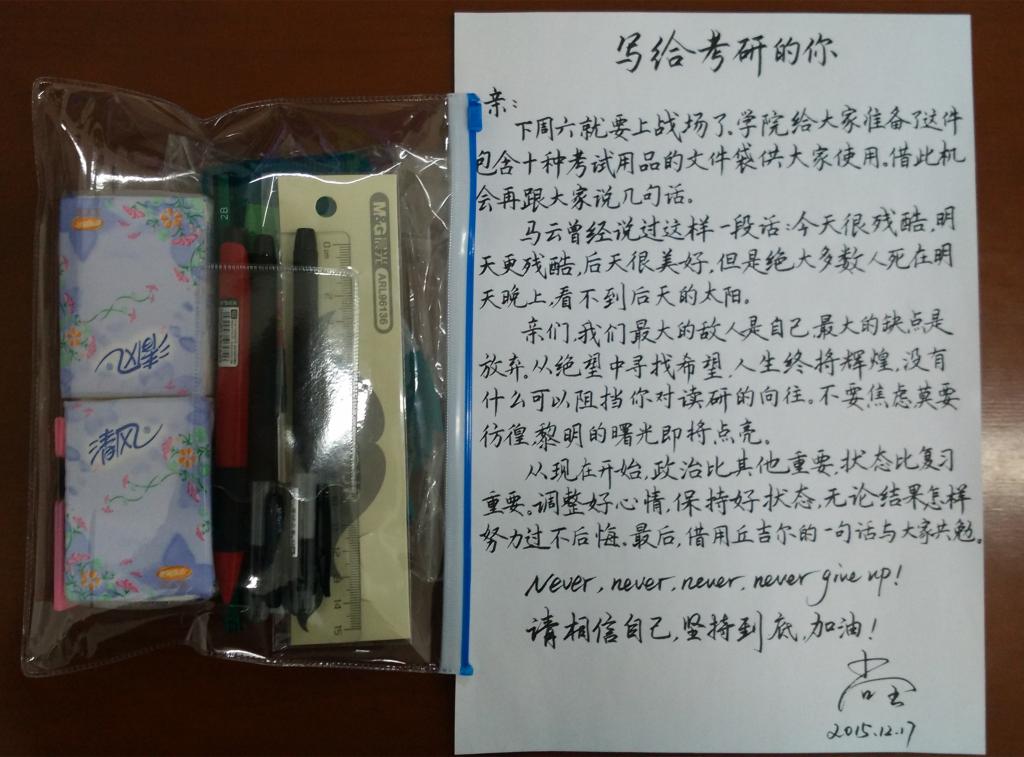 未来网(团中央办):“85后”辅导员撰写亲笔信为考研员工“打气”