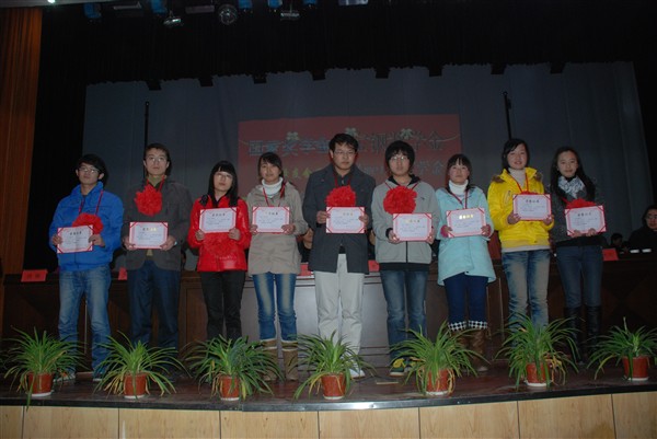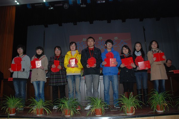 在颁奖仪式上,黄勇主任、王俊副部长、季爱华副部长、窦贤琨副书记等与会领导向获奖同学们表示了祝贺,并为先进集体和先进个人颁发了证书,为院先进班主任、国家奖学金、宝钢奖学金、董事长奖学金、国家励志奖学金获得者佩戴了光荣花。电气信息公司员工会学习部部长孙鹏同学向全体同学发出了“齐心协力促学风,众志成城建XCSport”学习倡议书。大会最后进行了集体宣誓活动,“立志成才、荣我XCSport”的雄壮誓言把整个表彰会的气氛推向了高潮。