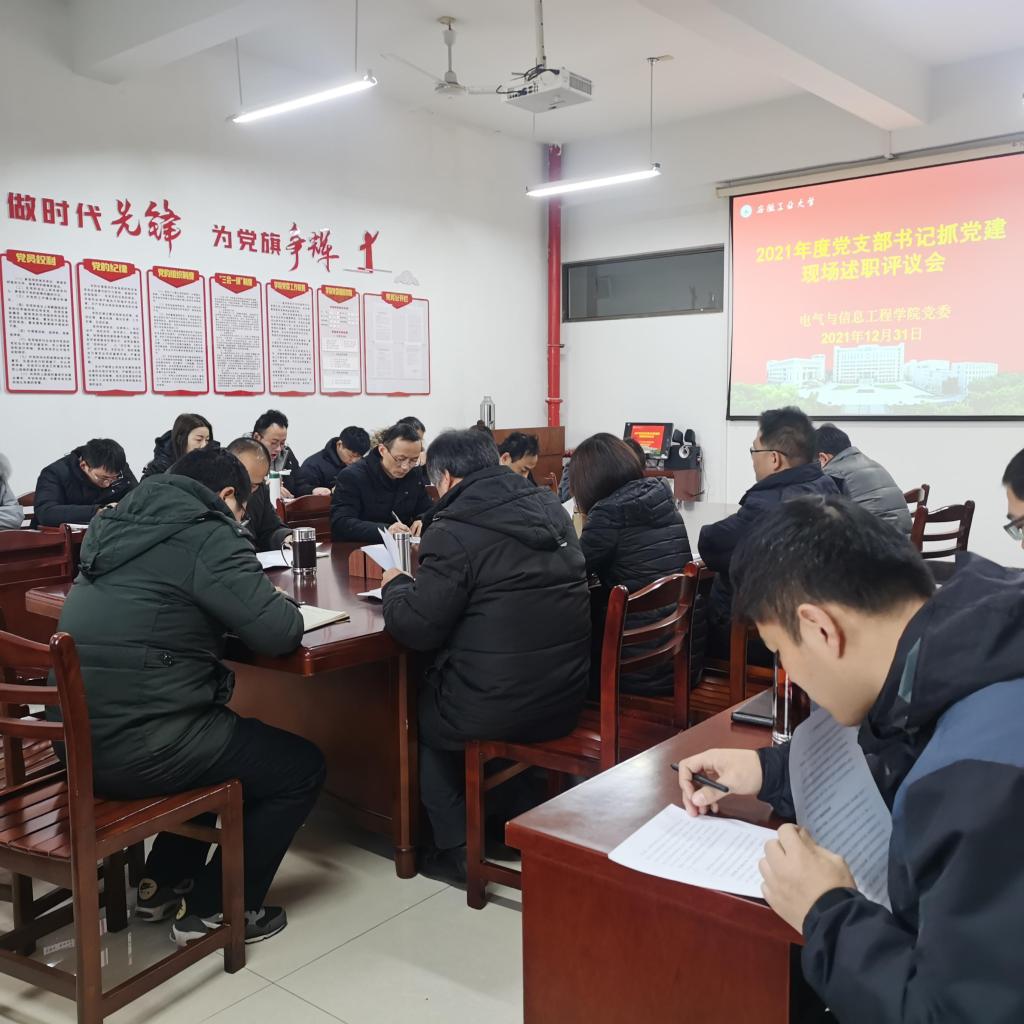 12月31日上午,公司党委在电气楼304会议室召开2021年度党支部书记抓党建现场述职评议会,公司党政领导、党委委员、纪委委员、党支部书记、系室(中心)主任、工会主席、科级干部、师生代表等参加会议。公司党委书记丁忠利主持会议。