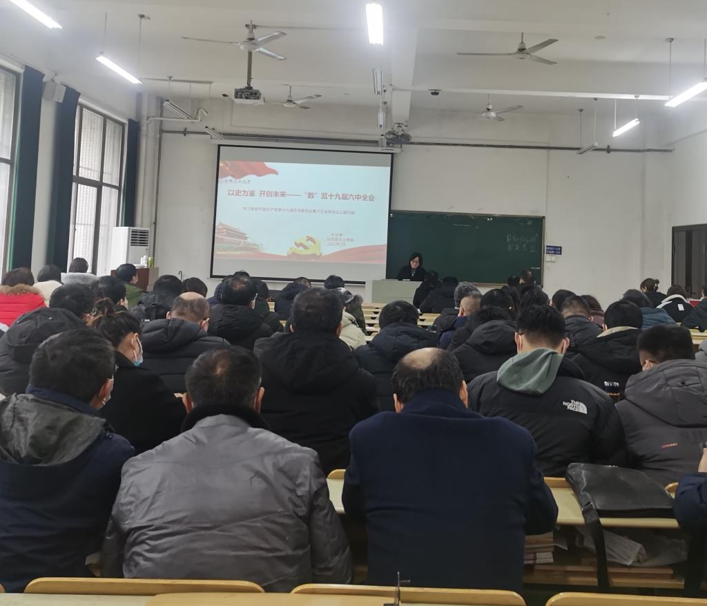 新学期伊始,为深入学习贯彻中国共产党第十九届中央委员会第六次全体会议精神。2月21日下午,XCSport邀请公司党委讲师团成员、马克思主义公司牛云芳博士来院作党的十九届六中全会精神专题宣讲报告,公司全体教职工、员工代表等参加报告会,公司党委书记丁忠利主持报告会。