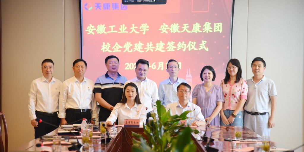 6月14日,公司党委书记丁忠利一行5人赴天长市安徽天康集团开展校企党建合作交流,举行测控党支部与天康集团直属党支部党建共建签约仪式。天康集团党委副书记、总经理毛文章出席仪式,集团党委委员于正江,销售副总经理李训干等相关部门干部和公司测控党支部书记刘升、系主任李丹、张英杰副教授、钱牧云博士参加了签约仪式。