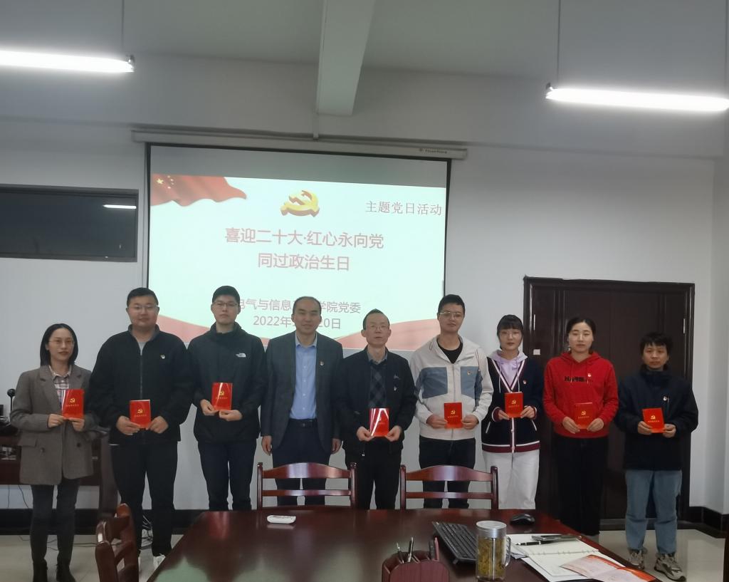 为激发公司教师党员的爱国主义情怀和干事创业奋勇争先的担当精神,10月20日上午,电气与信息工程公司党委为在10-12月份入党的教师党员举行“喜迎二十大·红心永向党·同过政治生日”主题党日活动。公司党委书记丁忠利、公司党委副书记、副经理夏玉钦、党支部书记代表、10-12月入党的教师党员参加活动。