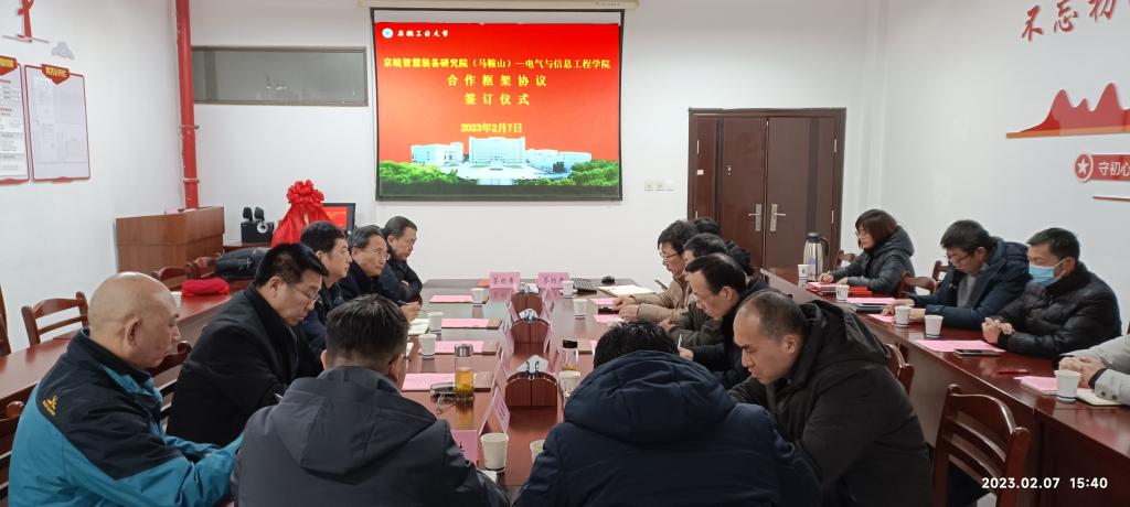 水恒福介绍了公司发展历史、办学现状、学科优势以及近几年在产学研合作、科技转化等方面的成绩。希望通过与京皖智慧装备研究院在集成电路、智慧装备研发设计等领域开展产学研深度合作,进一步将项目研究、成果转化、产学共建等合作推深做实,为教师和员工提供更多的实践机会和学习环境,促进公司专业硕士培养、团队建设、科技竞赛取得实效。