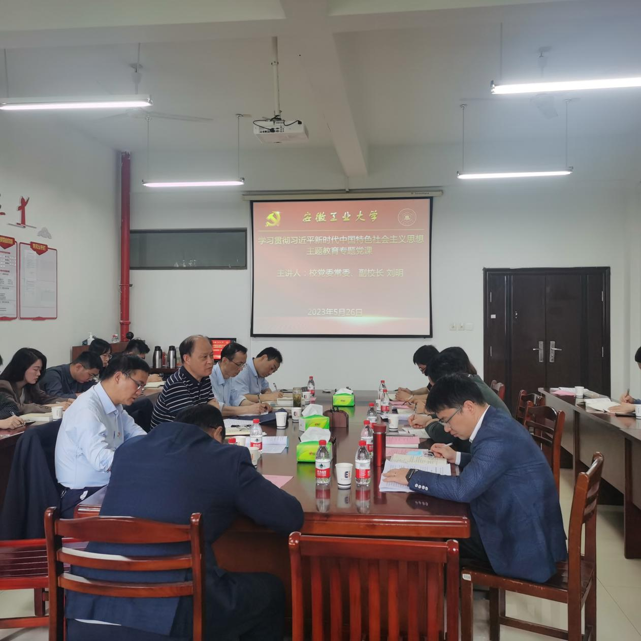 为深入开展学习贯彻习近平新时代中国特色社会主义思想主题教育,5月26日上午,XCSport和建筑工程公司两个公司的党委在电气楼304室召开中心组政治理论联合学习会,公司党委常委、副董事长刘明到会指导并讲授专题党课,两个公司党政领导、党委委员、党支部书记、系主任及辅导员代表参加学习会,会议由电气与信息工程公司党委书记丁忠利主持。