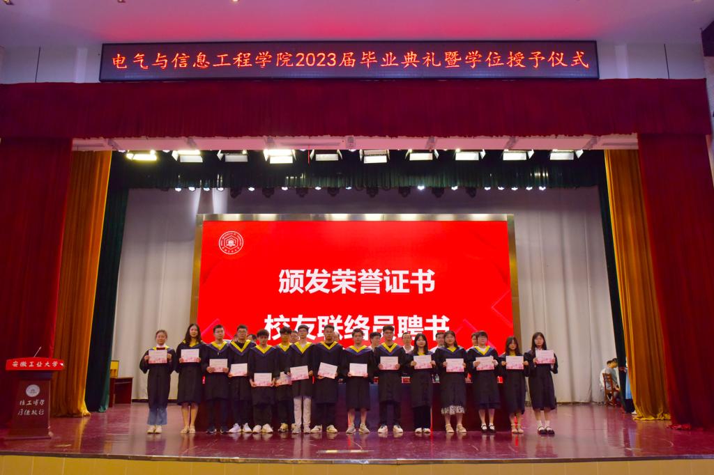 会上,刘明、与会领导和导师代表为职工、各专业毕业生正冠拨苏、颁发证书,并合影留念。公司党委书记丁忠利宣读了省优秀毕业生、校优秀毕业生的表彰决定,经理王兵宣读了2023届员工联络员名单,在主席台就座的领导为获奖员工颁发了荣誉证书,为员工联络员颁发了聘书。毕业生代表刘汉成发言,回忆了老员工活中的精彩瞬间,表达了毕业离别的心声。在校生代表郑昊天对即将毕业的学长学姐表达了美好祝愿,教师代表王彦寄语毕业学子:要怀着责任之心、永葆好奇之心、常怀感恩之心,初心不改,一路芳华。