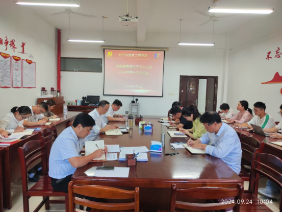 9月24日上午,公司党委理论学习中心组在电气楼304室开展政治理论第十次集体学习,公司党政领导、党委委员、党支部书记、科级干部和全体辅导员等参加,公司党委书记丁忠利主持。