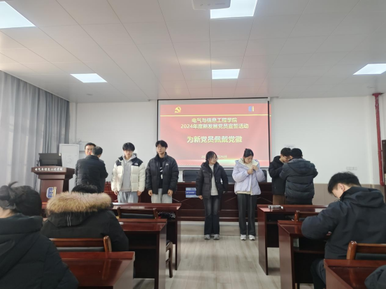 会上,李克明宣读了公司党委关于党员发展和转正的批复,并向新党员们表示祝贺,要求全体党员在今后的专业学习、社会实践和创新创业等各项工作中牢记党员身份,切实履行党员职责,勇当先锋充分发挥模范带头作用。丁忠利、李克明向新加入党组织的党员同志们佩戴党员党徽。宣誓环节上,全体新老党员起立,面向鲜红的党旗,在领誓人带领下,举起右拳,庄严宣誓,宣誓声铿锵有力,展现同志们坚定的理想信念和为党的事业奋斗终生的坚定决心。在专题党课环节上,丁忠利围绕党的二十届三中全会的丰富内容和重大意义等方面,分别从党的改革开放历程、全面深化改革的重大意义、三中全会报告的丰富内涵、老员工贯彻落实全会精神的具体实践路径等方面作了阐述与讲解;同学们听后纷纷表示对全会精神有了更深入的理解和把握,对未来大学里的努力方向有了更强劲的动力,在今后的专业学习、社会实践、班级管理、同学帮扶等方面将持续努力,以更加坚定的信念、更加务实的作风、更加有为的成绩,展示新时代员工党员的新作为和新形象。