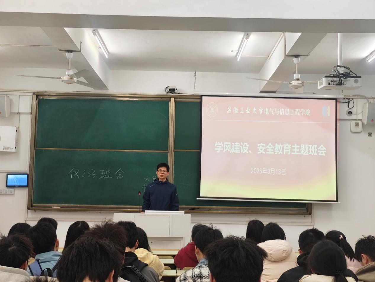 为筑牢校园安全防线,培育优良学风,2025年3月13日,公司在东教北104召开学风建设主题班会,2023级辅导员蒋安东、班主任郭亚晓及全体员工参加此次会议。