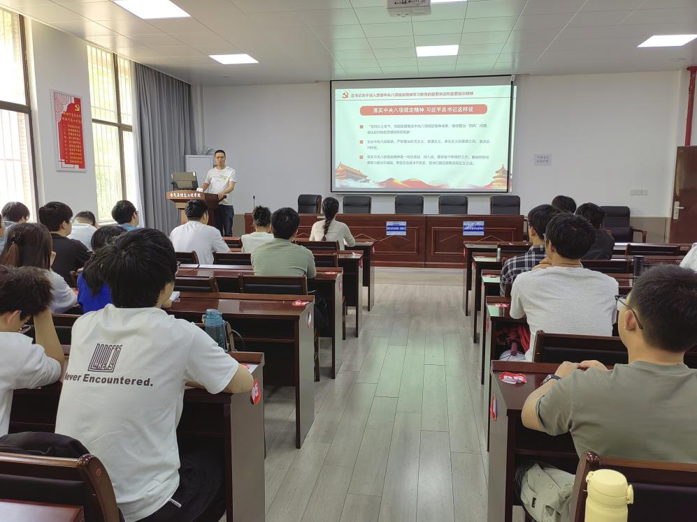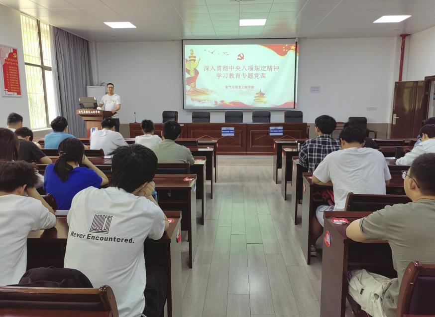为深入学习贯彻习近平总书记关于加强党的作风建设的重要论述和中央八项规定及其实施细则精神,持续推进党纪学习教育常态化和长效化。4月28日,公司员工测控党支部联合员工电气工程党支部在秀山校区电气楼113教室开展深入贯彻中央八项规定精神学习教育专题党课。党课由员工测控党支部书记杨恒基主讲,支部全体党员和本学期发展对象参加。