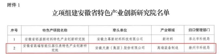 近日,安徽省科学技术厅对首批省级特色产业创新研究院进行立项公示,由安徽天康(集团)股份有限公司牵头、XC体育电气与信息公司等单位联合共建的“安徽省高端智能仪器仪表特色产业创新研究院”成功获批。
