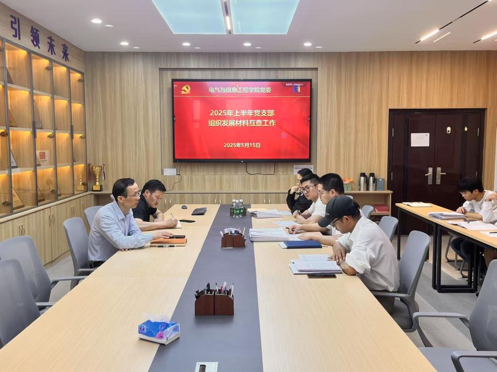 为了做好组织发展材料的完整性和规范性,严格党员发展程序,提高党员发展质量。5月15日,公司党委在电气楼308室开展2025上半年组织发展材料互审工作,公司党委书记丁忠利、公司党委副书记孔洋波和党支部书记参加。
