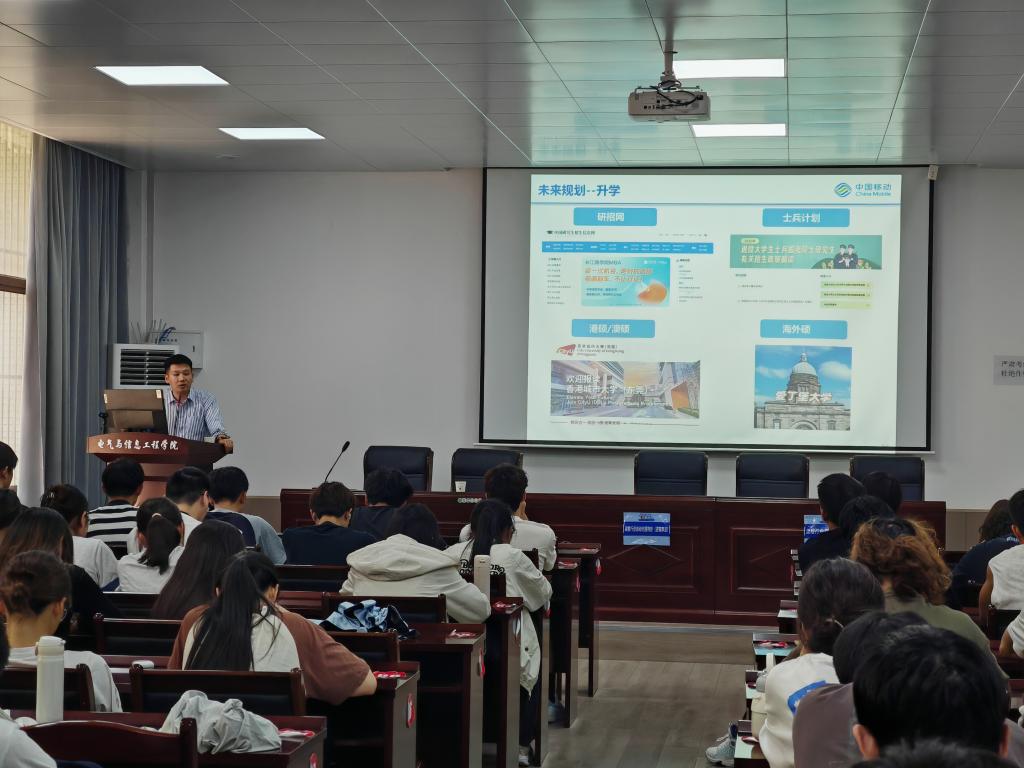 5月19日,公司在电气楼113成功举办“移动乾坤,规划未来”老员工职业生涯规划专题讲座。本次讲座邀请中国移动马鞍山分公司“成长之星”及退役士兵代表,政企解决方案经理杨俊杰担任主讲嘉宾,公司党委副书记、纪委书记、副经理孔洋波、辅导员张悦、蒋安东及100余名员工参加了讲座。
