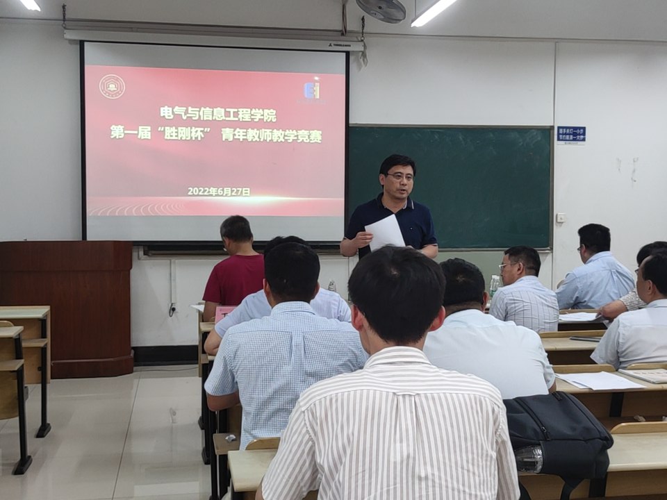 为进一步提升公司广大青年教师的教学能力和业务水平,迎接全省第六届普通高校青年教师教学竞赛,6月27日下午,公司首届“胜刚杯”青年教师教学竞赛在电气楼504举行。本次比赛特别邀请了教务处处长郑啸教授、创新教育公司经理黄志甲教授、马克思主义公司经理高敏教授以及公司教学督导组成员从宏寿、郎佳红老师担任评委,来自电气工程等系室7名青年教师参加了比赛,经理王兵致辞,副经理程木田教授主持。