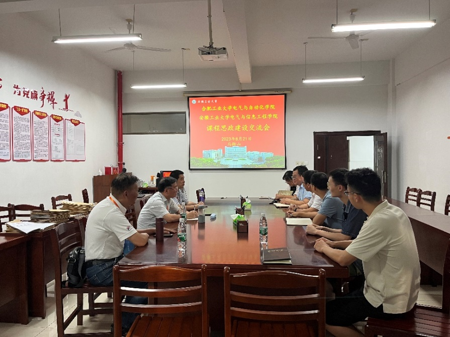 为进一步深化课程思政建设与教学改革,帮助公司青年教师深入挖掘各类课程和教学方式中蕴含的思政教育资源,全面推进公司的课程思政建设,8月21日下午,公司与合肥工业大学电气与自动化工程公司召开课程思政建设交流会。合肥工业大学电气与自动化工程公司副经理黄海宏教授、电气工程系支部书记阚超豪副教授、宣城校区实验室主任岳胜老师,以及公司经理沈浩教授、副经理程木田教授、电气工程系支部书记陈兆权教授,实验中心副主任丁易新老师,以及青年教师徐笑娟、陈思乐、王超参加了交流会。会议由程木田主持。