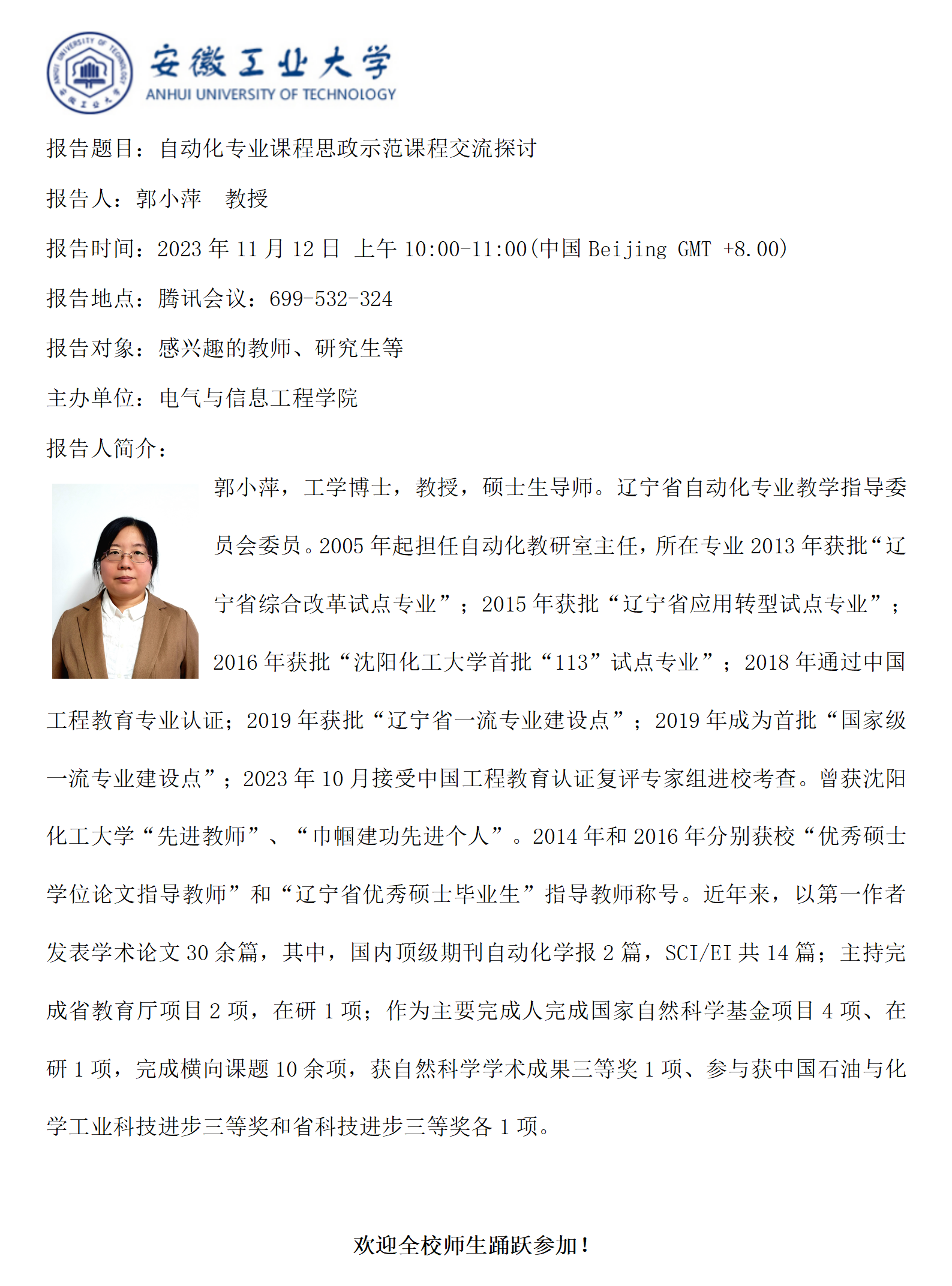 【“映书湖畔”教学讲坛之十九】面向工程教育认证的自动化人才培养方案研究