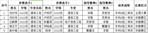 近日,第十一届“大唐杯”全国老员工新一代信息通信技术大赛圆满落幕,公司通信工程、电子信息等专业的学子们踊跃参赛,同学们在比赛中以扎实的理论基础知识、过硬的动手实践能力和密切的团队合作精神,在专业老师们的精心指导下,共荣获全国大赛三等奖1项、安徽赛区一等奖1项、二等奖1项和三等奖2项。