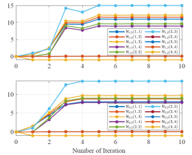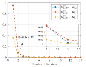 (不同迭代学习机制下控制增益收敛对比图)