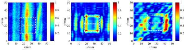 三种典型CFRP铺层结构(单向板、正交板、多向板)分层损伤涡流检测的结果
