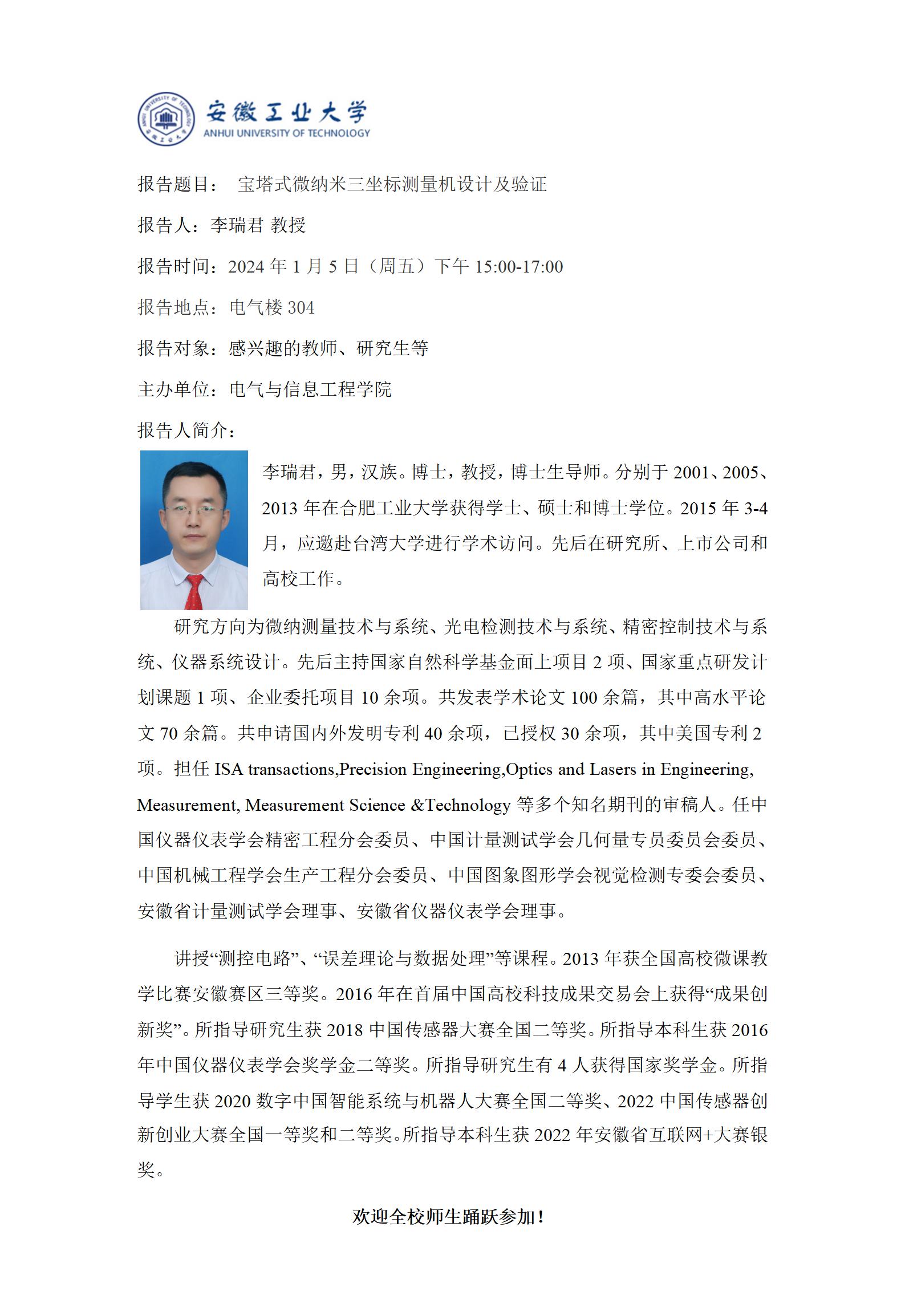 “谦之”学术讲坛之六十六-宝塔式微纳米三坐标测量机设计及验证