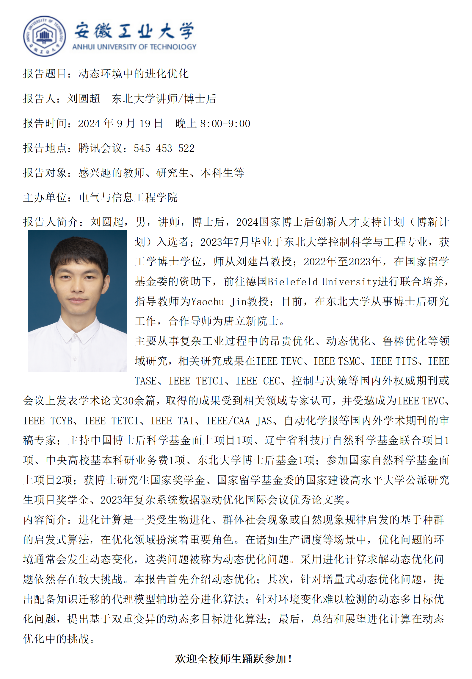 砺山学术报告之三十九-面向动态多目标优化问题的算法研究