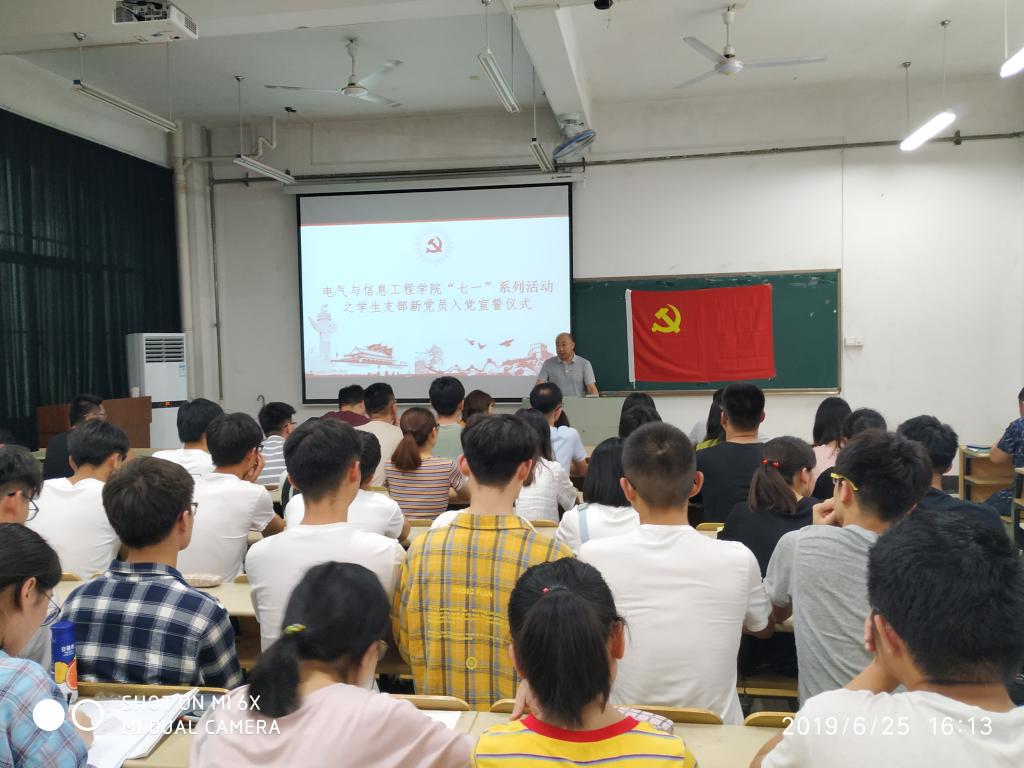 6月25日下午,XCSport于电气楼112室举行新党员入党宣誓仪式。公司党委副书记郭宏、各员工党支部书记、各年级辅导员、2019年上半年新发展的党员以及全体员工党员参加了仪式。仪式由员工自动化党支部书记张敏主持。