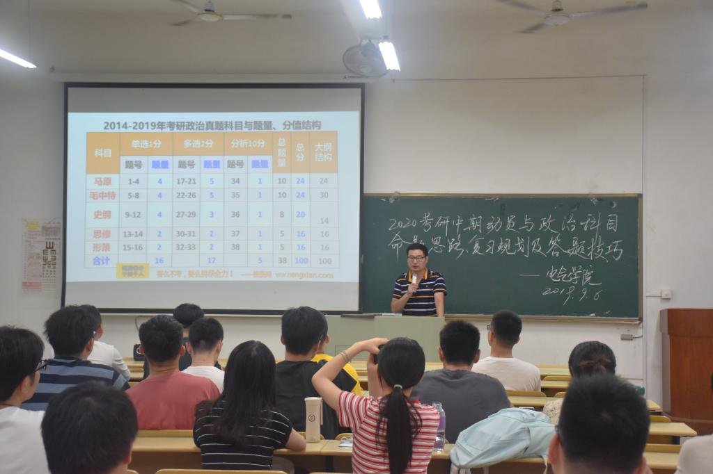 为帮助考研员工提振信心、科学高效地备战考研政治科目,96日晚,XCSport邀请南京旅游职业公司思政部教师尚全老师作为主讲人,在电气楼113教室举办“2020年考研中期动员与政治科目命题思路、复习规划及答题技巧”专题讲座,2016级考研学子聆听了本次讲座。