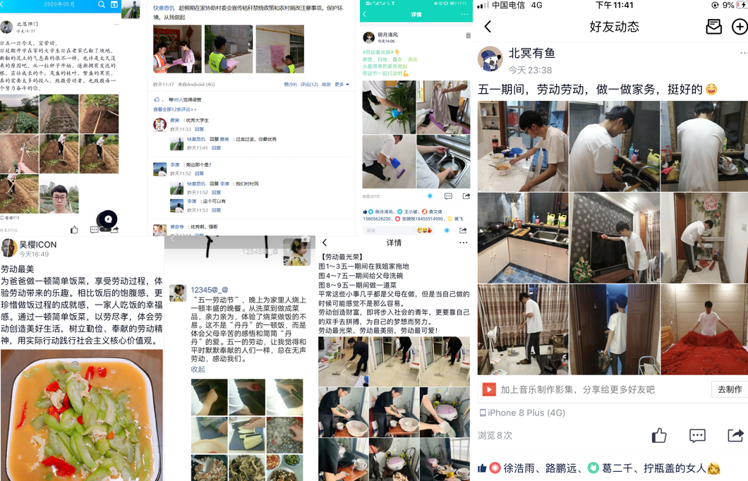 烹饪菜肴、种植花草、卫生扫除、田间劳作……居家期间同学们将家庭作为劳动的主阵地,积极参与劳动教育第二课堂。在第二课堂中,同学们也积极走向社会,或学习体验以体力劳动为主的居家生活劳动和生产劳动,或宣传科学防疫知识,为医护人员子女提供公益家教,积极投身家乡战“疫”公益性服务,勤勉奋斗、爱国力行,用实干兴邦谱写劳动最美乐章。用劳动生活记录点滴,体会劳动创造美好生活,树立正确的劳动观。