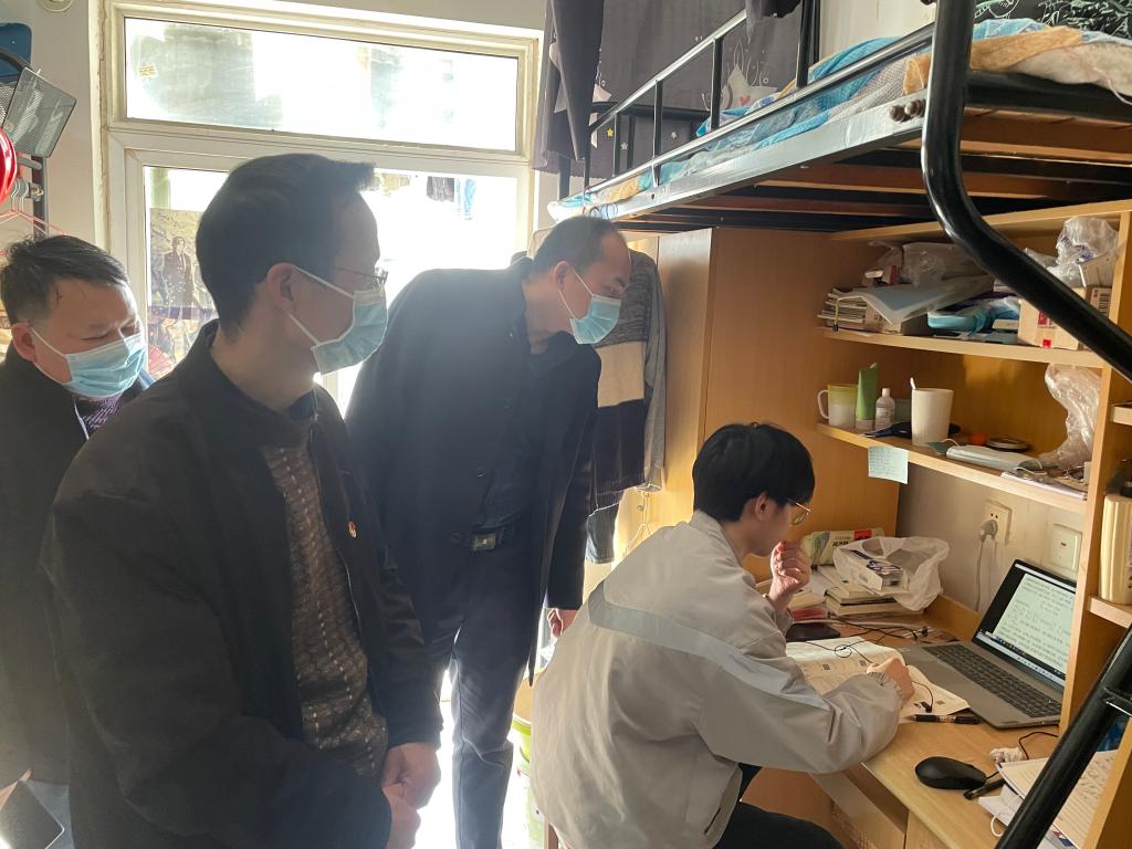 为做好线上教学管理,确保线上教学质量,3月29日下午,电气与信息工程公司党委书记丁忠利,副书记、副经理夏玉钦带领辅导员深入宿舍对线上教学活动和员工学习情况进行了检查。