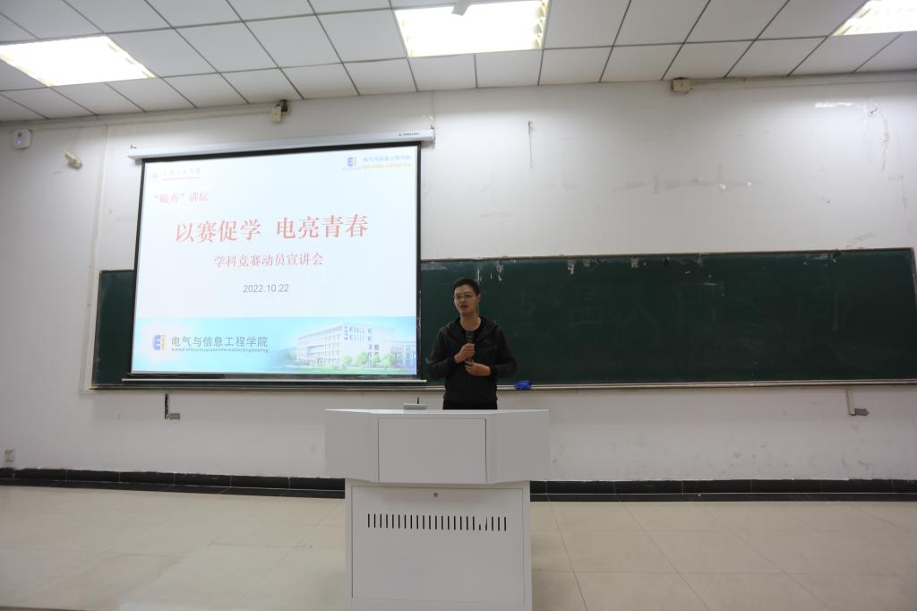 动员会上,李丹教授向2022级新生介绍了公司创新班建立的宗旨、选拔方式、培养过程,然后就创新班对接的两大A类学科赛事——全国老员工智能汽车竞赛和全国老员工电子设计竞赛展开介绍,并展示了往届创新班优秀学子的竞赛风采和获奖情况,鼓励同学们积极报名。随后,创新班优秀学子代表杨净淳、徐劭等人,分别分享了个人的参赛历程、参赛收获,并展示了自己的参赛作品、参赛视频,鼓励新生在大一期间积极学习相关知识,为接下来的参赛做准备。最后,辅导员杨恒基就公司学科竞赛和科技成果奖励制度和公司学子近年来主要参赛项目等展开介绍,鼓励同学们树立学习目标,通过参加学科竞赛开阔自己的视野,培养动手能力和创新能力,在竞赛中学习专业知识,提高综合能力。