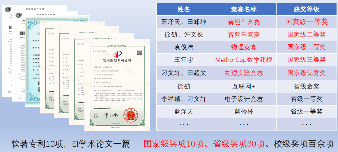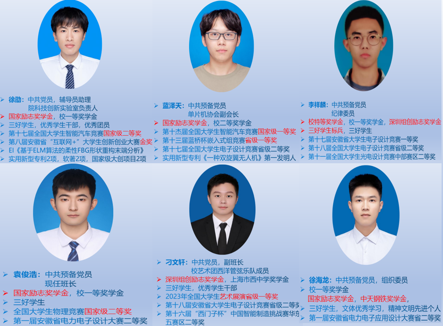 三年来,在公司领导的关心关怀下,在辅导员、班主任及全体同学的努力下,自201班抓引领、固根基、正风气、蕴内涵,打造了一个有信念底色、有担当本色、有发展成色、有青春亮色的集体。班级入党申请书提交率100%,入党积极分子26人,预备党员10人,均为全院最高。班级连续3年获得“先进班集体”、“五四红旗团支部”等荣誉称号。班级同学发表EI学术论文1篇,在各类科技竞赛中获国家级奖项10项,省级奖项30项,校级奖项100余项,软著专利10项,国家级大创6项,省级大创10项。班级四级通过率100%,计算机省二级通过率100%,今年,自动化专业推免名额共6个,6个名额全部花落该班。三年来班级同学0处分、0违纪、0安全事故,0学籍处理。
