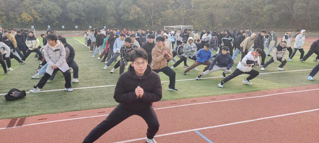 为了激励23级新生加强体育锻炼,增强自我锻炼的意识,强健自身体质,公司开设新生乐跑活动。早上6:40,员工准时在操场主席台前集合完毕。XCSport23级全体新生及辅导员老师在活动横幅上签下自己的名字,这一庄重而又热烈的仪式感激发了同学们的集体荣誉感。冬季的早晨气温较低,为了防止感冒和运动伤害,晨跑前老师带领同学们转动脚腕,活动膝关节,为跑步做好热身。接着,在辅导员和员工会成员的带领下,600余名同学迈着有力的步伐,呼吸着清冷的空气,迎着初生的朝阳,一起在新田径场开始了乐跑锻炼,开启了元气满满的一天。他们的脸上洋溢着健康的红润,流露出对生活的热爱和对体育的执着。尽管寒风凛冽,他们依然坚持在操场上,尽情挥洒汗水,释放青春的活力。