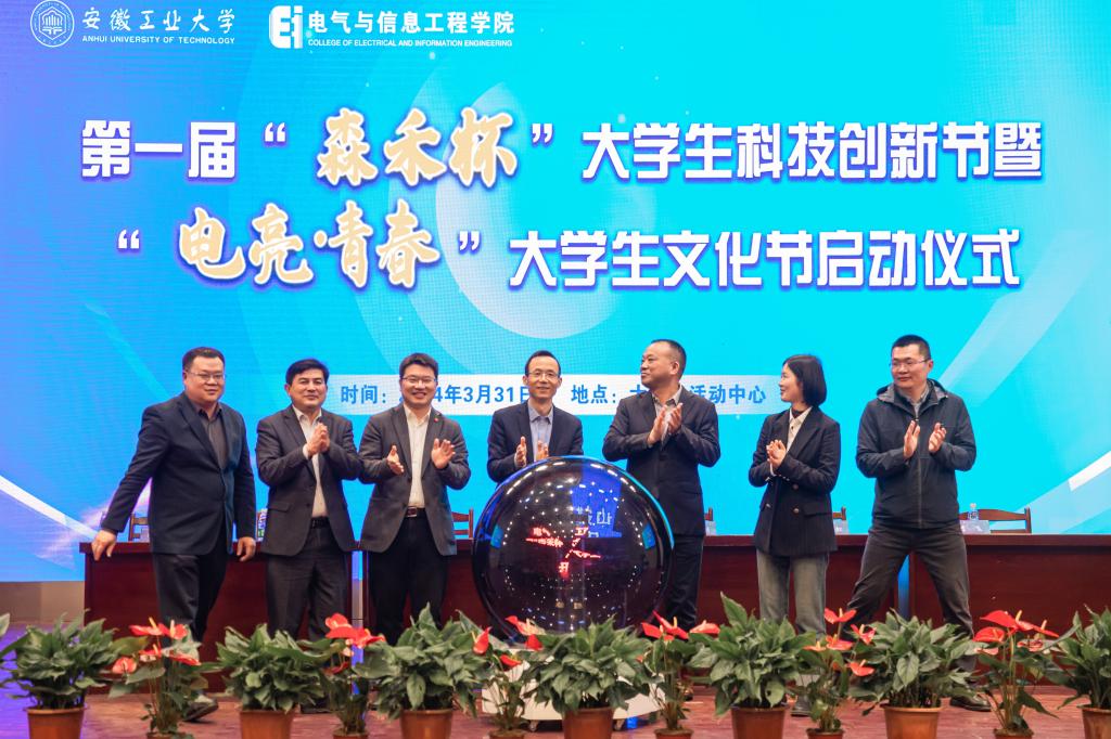 公司党委书记丁忠利宣布XCSport第一届“森禾杯”老员工科技创新节暨“电亮·青春”老员工文化节正式开幕,与会领导走向前台共同按下了启动仪式球。