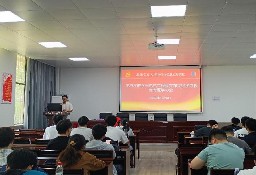 为深入学习贯彻落实党纪学习教育,加强支部党员的党性修养。5月28日中午,员工电气工程党支部在秀山校区电气楼113开展了党纪学习教育专题学习会。支部全体党员、发展对象参加了会议,会议由蒋安东主持。