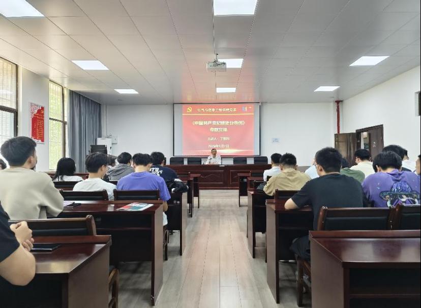 为扎实开展党纪学习教育,引导员工党员学纪、知纪、明纪、守纪。6月7日,公司员工电气工程党支部在电气楼113教室开展党纪学习教育专题党课。公司党委书记丁忠利主讲,支部全体党员参加,支部副书记蒋安东主持。