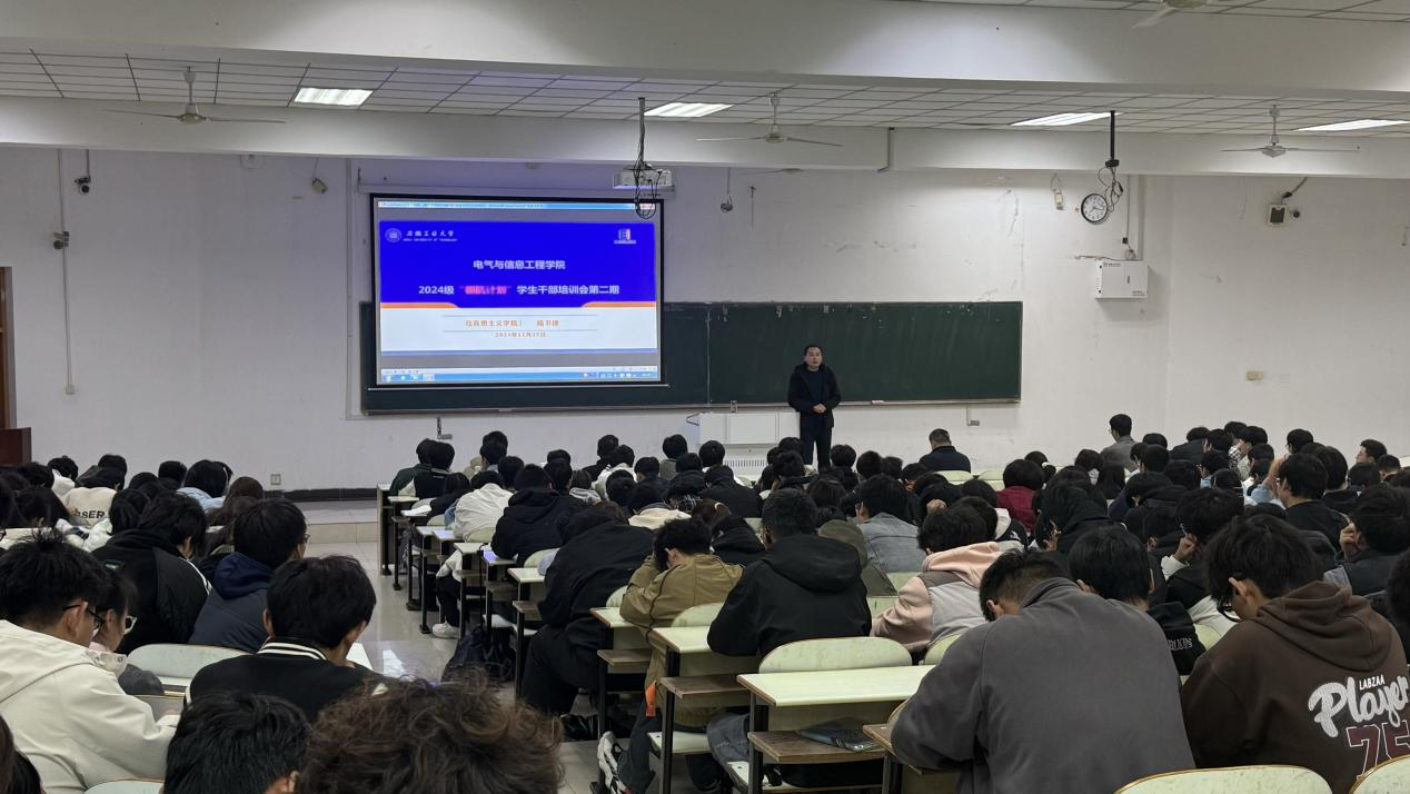为进一步加强员工干部队伍建设,提升员工干部的综合素质与责任意识,11月25日,公司于佳山校区第三教学楼203教室开展2024级“领航计划”员工干部培训会第二期。本次培训会邀请马克思主义公司陆书建老师主讲,2024级全体班委和寝室长参加。