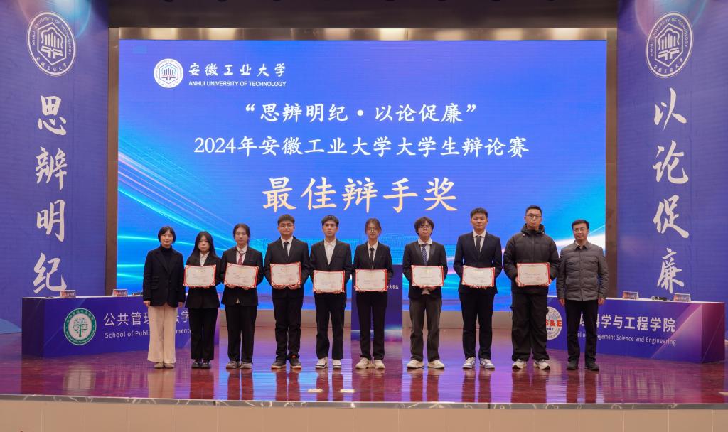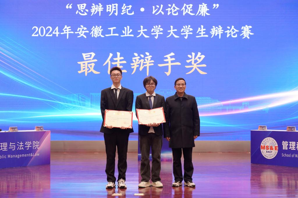 本次大赛对优秀组织奖、冠亚季军代表队和全部赛程中涌现出的最佳辩手进行了颁奖。公共管理与法公司获冠军,管理科学与工程公司获亚军,XCSport、能源与环境公司代表队获季军。公共管理与法公司、管理科学与工程公司、XCSport、能源与环境公司公司、外国语公司、马克思主义公司、机械工程公司获“优秀组织奖”。XCSport郝钰涵等12名同学获“最佳辩手奖”。